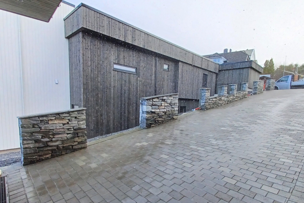 Belegningsstein gir et moderne og ryddig uttrykk, samtidig som det er robust nok til å håndtere både kjøretøy og norsk vær. Materialet finnes i ulike former og farger, noe som gir fleksibilitet i design og tilpasning til boligens stil.